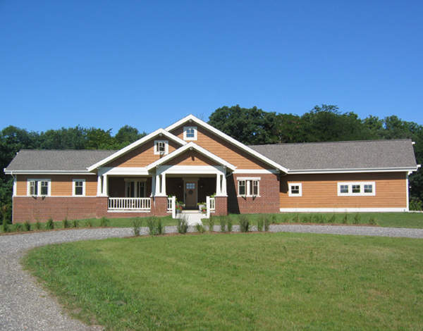 Exterior materials are traditional, with a hierarchy of brick and cedar lap and cedar shingle sidings tied together by the abundant use of fenestration and architectural detailing.