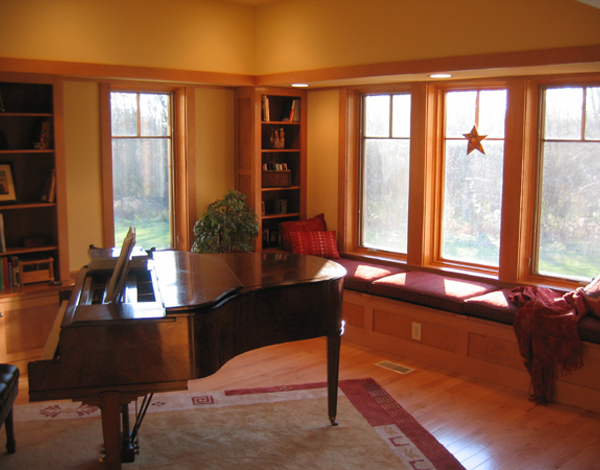This house reacts to it's rolling 5-acre site in a rural subdivision by capitalizing on the nearly 360 degree views while still giving careful consideration to natural light and passive solar orientation.
