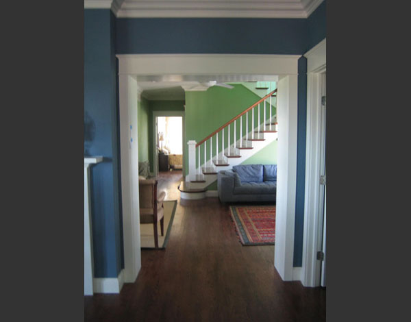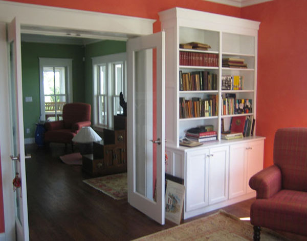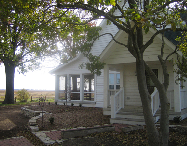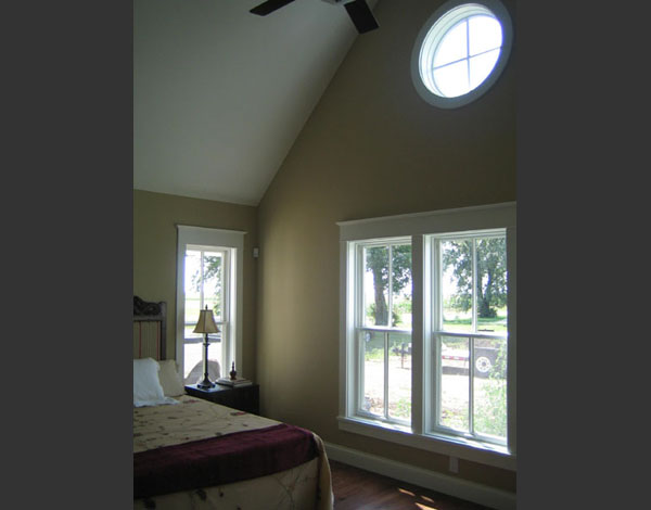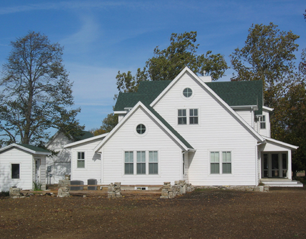 Designed to emulate many aspects of the original, this house recreates many experiences remembered by the client. The somewhat open plan and the abundant fenestration capture views of the countryside in all directions, and a strong relationship between interior and exterior spaces is facilitated by a series of porches and outdoor spaces. Several elements of the original house were incorporated into the design, including a number of ornamental doors and the stone foundation, which was reclaimed for use in the landscape design.