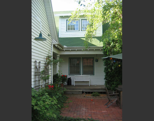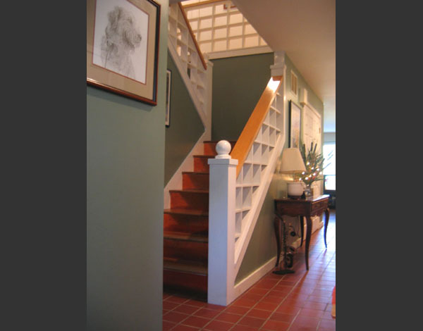The simple rural farmhouse vernacular is adapted here for suburban use, with a strong form running east-west to maximize solar orientation. The complementary form of the garage bisects the main house dividing it into two south facing blocks, one formal and one informal, and both containing traditional porches.